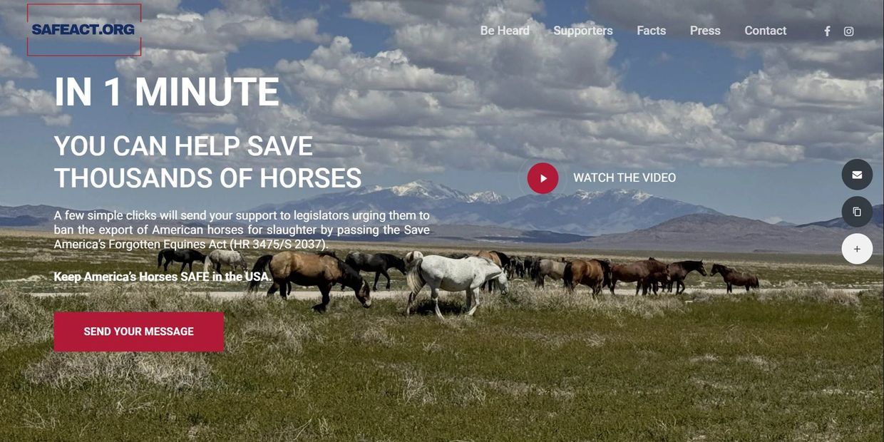 We are pleased to announce the launch of SAFEACT.org supported by many including Utah’s top equine sanctuaries. The website is a national appeal to encourage legislators to pass the Save America’s Forgotten Equines Act (SAFE Act HR 3475/S 2037) which will ban the export of American equines to foreign meat plants for slaughter and protect America’s most vulnerable horses. SAFEACT.org was created by Utah-based Equine IQ and designer Allison Walton to provide constituents a convenient opportunity to share their support of the ban with a few quick steps.